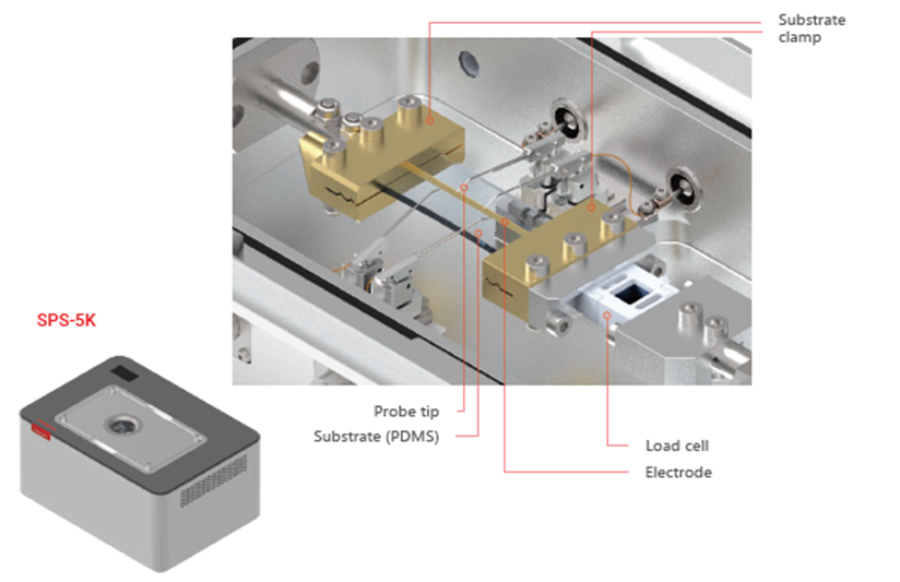 ストレチャブル プローブシステム In-situ Stretchable Probe System ストレチャブル プローブシステムは、伸び縮みする平面デバイスおよびフレキシブルデバイスに対して、電気特性評価を実現し、従来のクランプ固定方式に伴う制約を解消します。 |